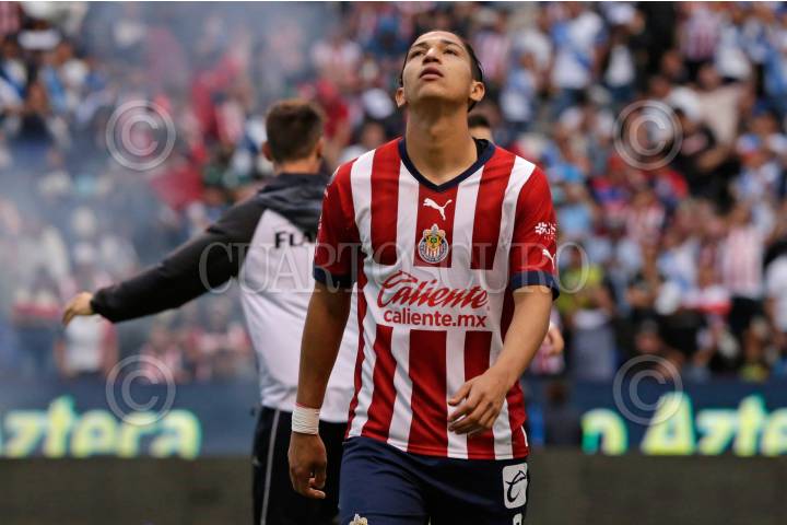 Ángel Zaldívar en lamento durante el partido de repechaje entre en el Club Puebla y las Chivas de Guadalajara del torneo Apertura 2022 de la Liga BBVA MX, celebrado en el estadio Cuauhtémoc.