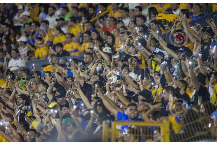 La afición de Tigres desde la tribuna en el encuentro ante el Puebla, en el estadio Universitario, partido correspondiente al repechaje de la Clausura 2023.