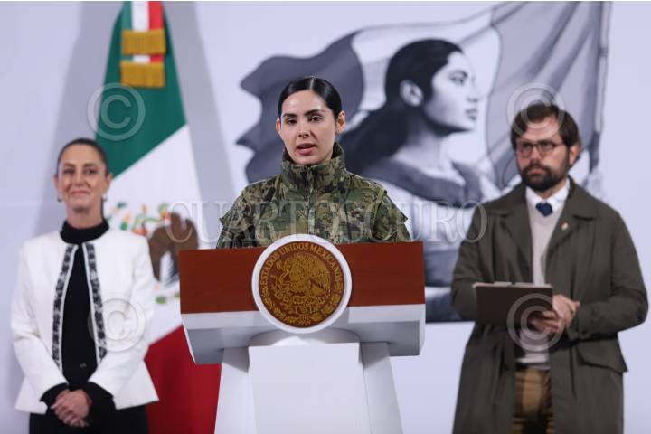 CIUDAD DE MÉXICO, 02ENERO2025.- Juana Peñaloza, química analista de precursores en campo de la Secretaría de Marina, habla sobre el reportaje del periódico estadounidense New York Times, sobre un laboratorio de fentanilo ubicado en el país. FOTO: DANIEL AUGUSTO/ CUARTOSCURO.COM