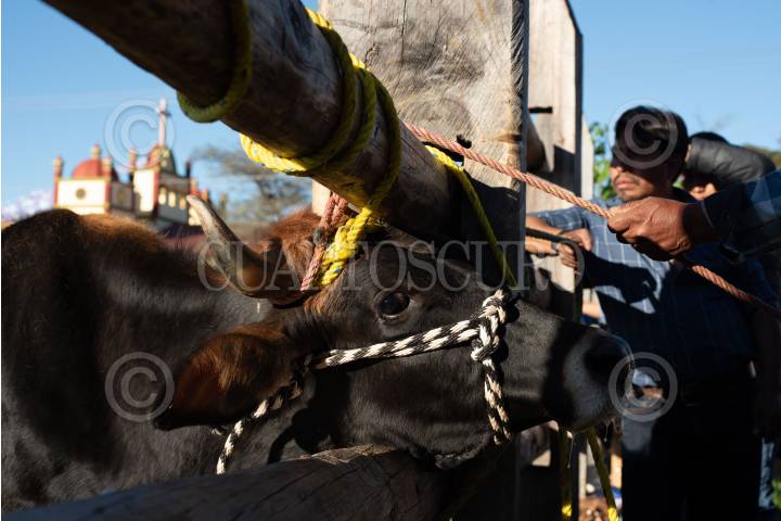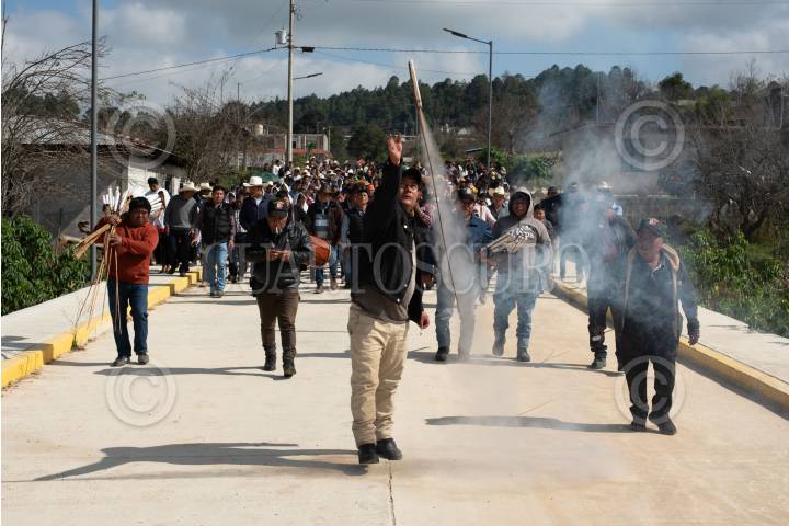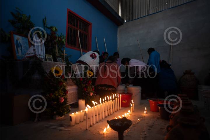 LÁZARO CARDENAS CHILIL, CHIAPAS, 18ENERO2025.- Autoridades tradicionales de la región Tsotsil de Chiapas realizaron la tradicional fiesta para celebrar al señor de Esquipulas, en la cual las mujeres más grandes del pueblo tienen el encargo de la preparación de la Chicha, una preparación a base de maíz y azúcar. Se realizan procesiones en las principales calles de la localidad para ir adornando la iglesia y al Santo ponerle ropa nueva, para finalizar la fiesta se lleva a cabo el tradicional jaripeo de la región en el que ganaderos de los alrededores prestan toros para jugarlos. FOTO: ISABEL MATEOS /CUARTOSCURO.COM