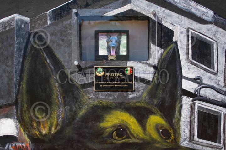 Monumento y restos del elemento canino Prieto en el Centro de Producción Canina de la Sedena.