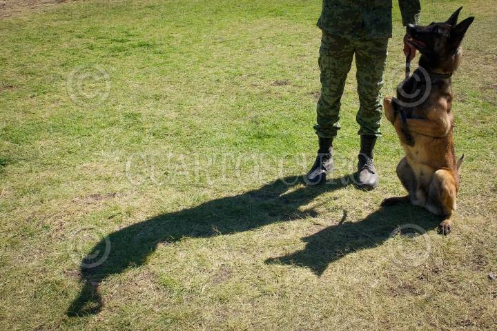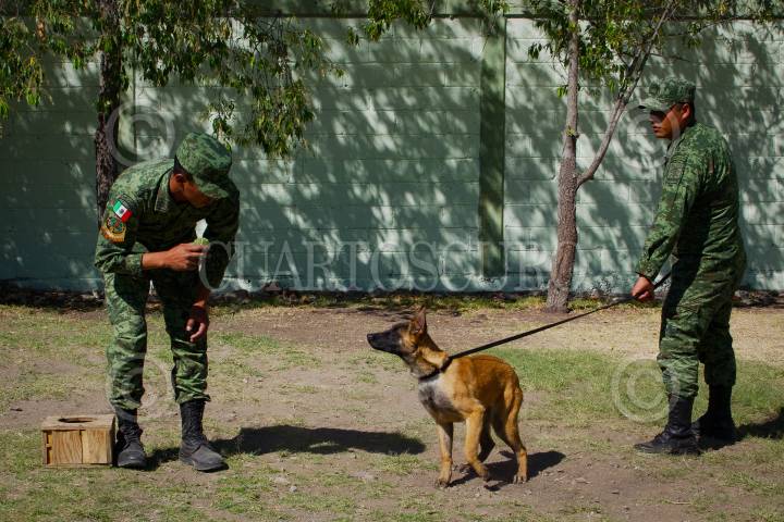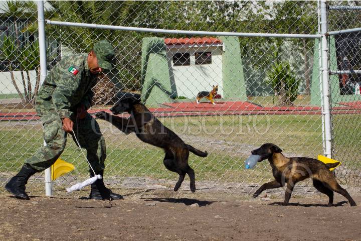 Parte del entrenamiento de caninos en el Centro de Producción Canina de la Sedena.