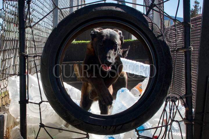 Parte de la estimulación con pista de obstáculos en el Centro de Producción Canina de la Sedena.