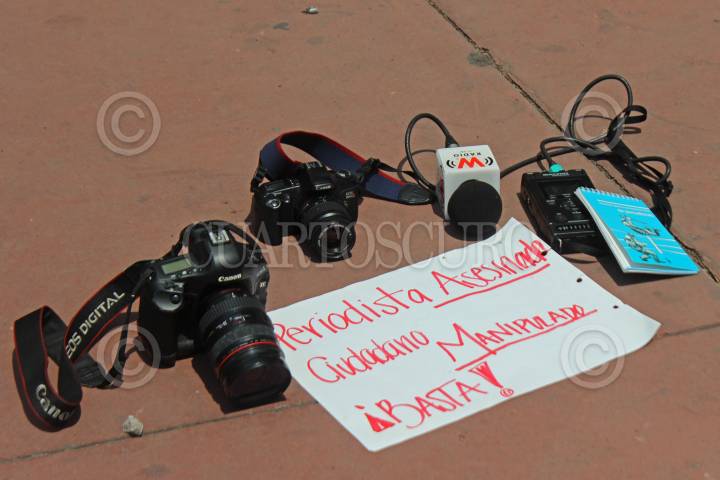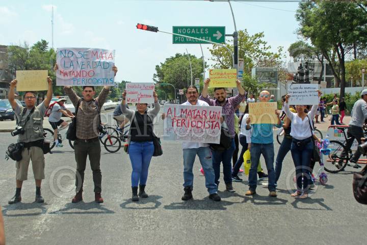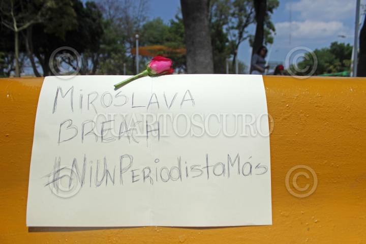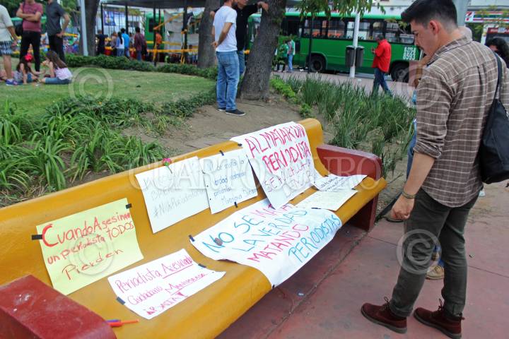 GUADALAJARA, JALISCO. 26MARZO2017.- Un grupo de periodistas tapatíos se manifestó en el Parque Rojo en protesta por los asesinatos contra comunicadores en el país, tras el reciente hecho ocurrido en Chihuahua, donde hombres armados asesinaron a la reportera Miroslava Breach. FOTO: FERNANDO CARRANZA GARCIA / CUARTOSCURO.COM