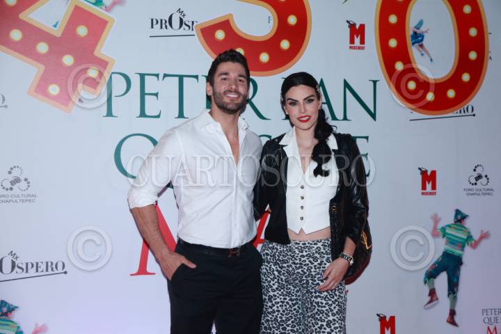 CIUDAD DE MÉXICO, 23MAYO2025. Alma Cero y su esposo Enrique Orozco a su paso por la alfombra roja de la obra de teatro “Peter Pan que sale mal” celebrando sus 450 representaciones en el Foro Cultural Chapultepec. FOTO: EDGAR NEGRETE LIRA/CUARTOSCURO.COM
