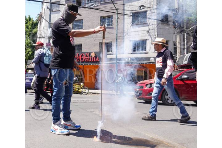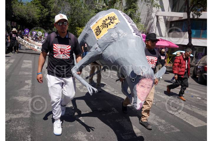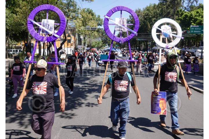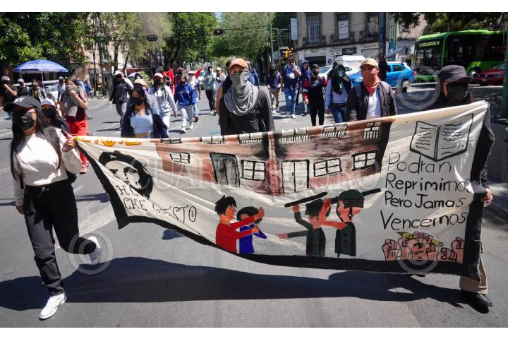 CIUDAD DE MÉXICO, 05ABRIL2025.- A ocho años de la masacre de Arantepecua, Michoacan comuneros del poblado y comunidades aledañas, casas de estudiantes de Morelia y normalistas marcharon de la Secretaria de Gobernación (SEGOB) rumbo a la Fiscalia General de la República (FGR) para exigir justicia por violaciones ocurridas los días 4 y 5 de abril de 2017, además exigieron juicio popular contra el entonces gobernador Silvano Aureoles, al acusarlo de ser el responsable de la represión. FOTO: MAGDALENA MONTIEL/CUARTOSCURO.COM