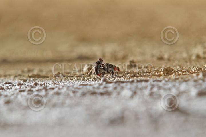 GUADALAJARA, JALISCO, 12JULIO2016.- Dos moscas durante la reproducción, estas son de los insectos que durante su proceso de vida pasan por un huevo, después una larva, sucesivamente le sigue una pupa y por ultimo se convierten en adultos. FOTO : FERNANDO CARRANZA GARCIA / CUARTOSCURO.COM