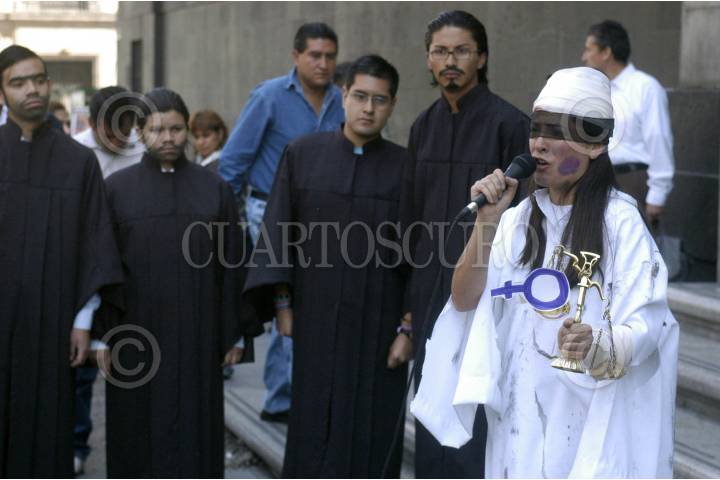MÉXICO, D.F., 06MARZO2007.- La Red por los Derechos Sexuales y Reproductivos en México, realizó un performence afuera de la Suprema Corte de Justicia de la Nación por considerar que en el país no se garantizan los derechos sexuales de las mujeres. FOTO: JERONIMO MORENO/CUARTOSCURO.COM
