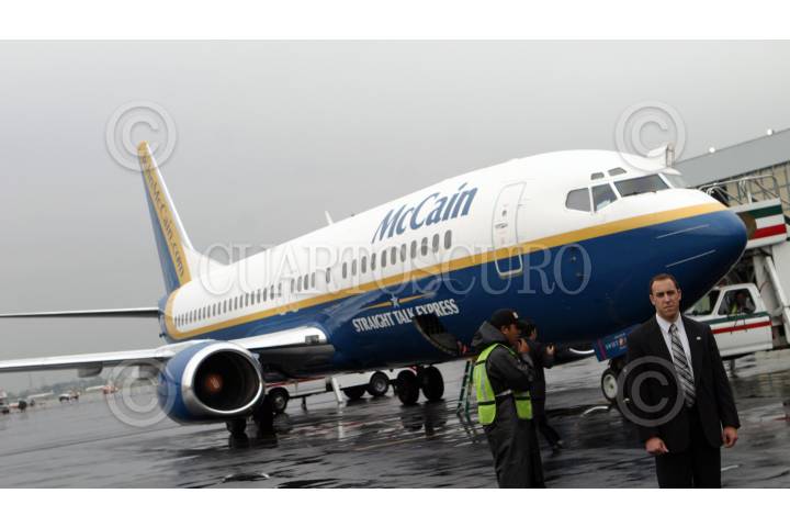 MÉXICO D.F., 02JULIO208.- El avión del candidato republicano a la Casa Blanca, John McCain es resguardado por elementos del Servicio Secreto de los Estados Unidos. FOTO: RODOLFO ANGULO/CUARTOSCURO.COM