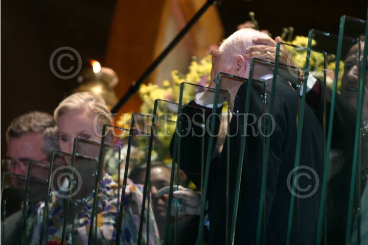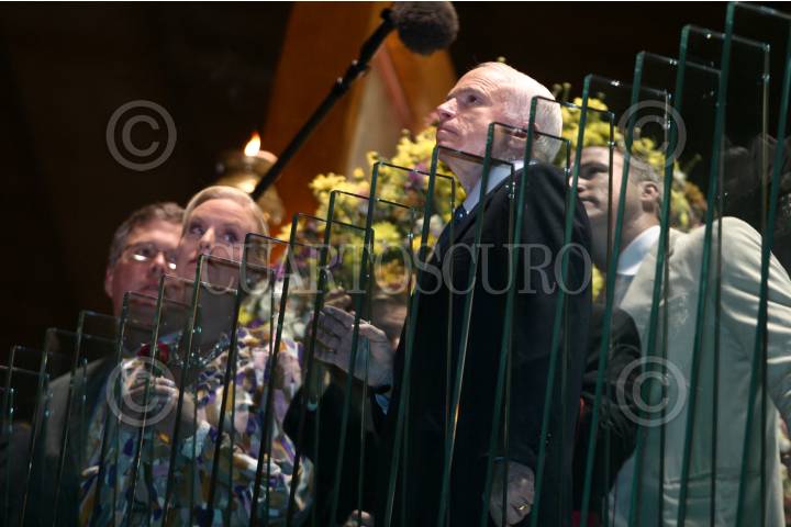 MÉXICO D.F., 03JULIO2008.- El senador por Arizona y candidato a la presidencia de Estados Unidos por el partido Repúblicano John McCain acompañado de su esposa Cindy McCain, les dá la bendición el réctor de la Basílica Diego Monroy durante un recorrido por la Basilica en donde observaron el manto de la Virgen de Gudalupe. FOTO: RODOLFO ANGULO/CUARTOSCURO.COM