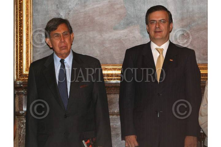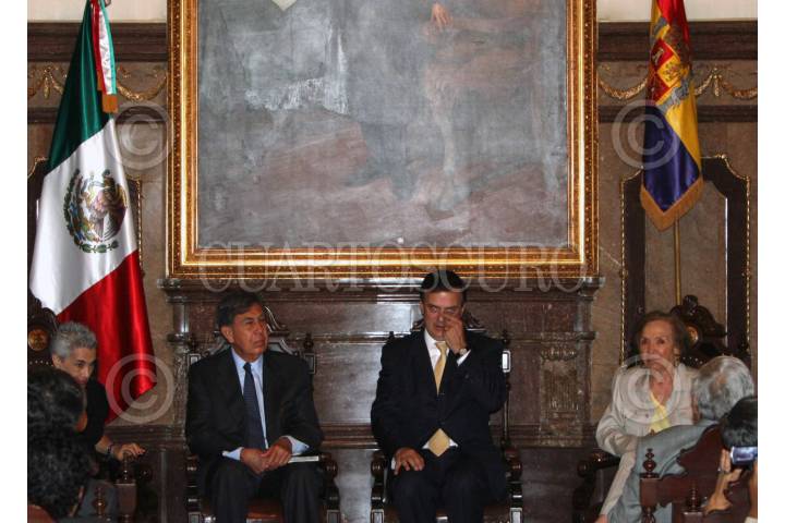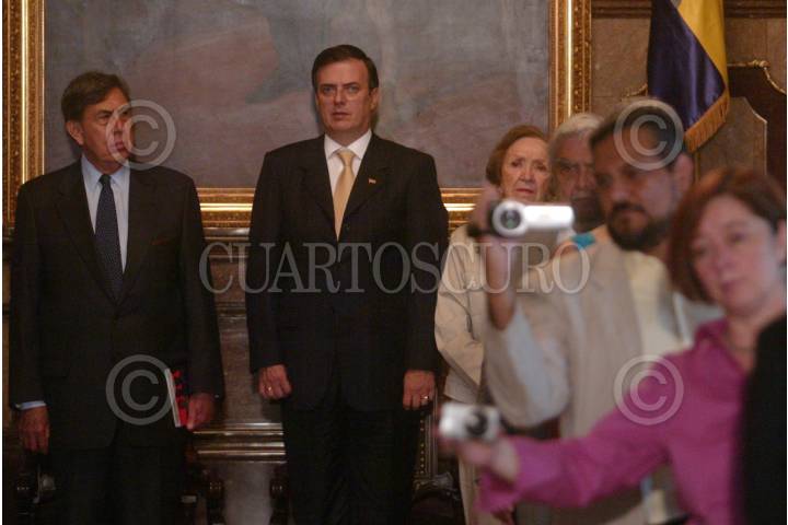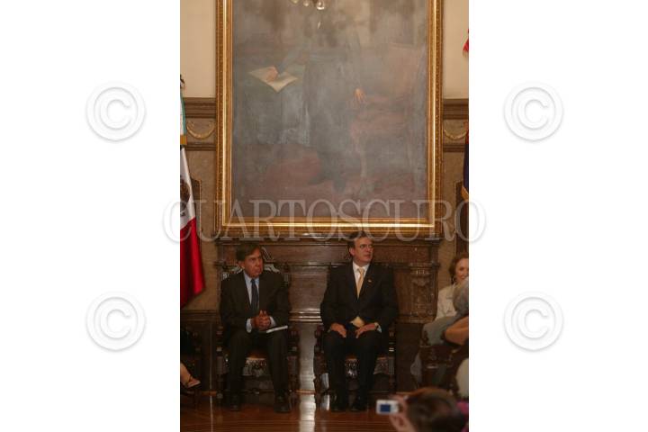 MÉXICO D.F., 12JUNIO2009.- Marcelo Ebrard Casaubón, Jefe de Gobierno, recibió esta mañana en el antiguo Palacio de Ayuntamiento a Cuauhtémoc Cárdenas Solórzano donde ambos encabezaron la ceremonia en la que la Ciudad de México rinde homenaje al Exilio Español Republicano en el 70 Aniversario de la llegada del buque Sinaia al Puerto de Veracruz. FOTO: IVAN MENDEZ/CUARTOSCURO.COM