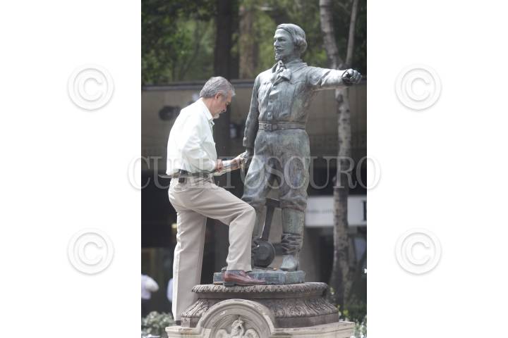 MÉXICO, D.F., 17AGOSTO2012.- El escultor Juan Carlos Canfield restaura el monumento del general republicano, de orígen tamaulipeco, Pedro José Méndez, en el paseo de la Reforma. El gobierno del Estado de Tamaulipas es el encargado de la restauración. FOTO: JUAN PABLO ZAMORA /CUARTOSCURO.COM