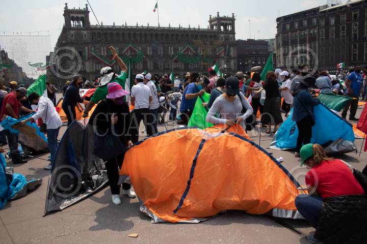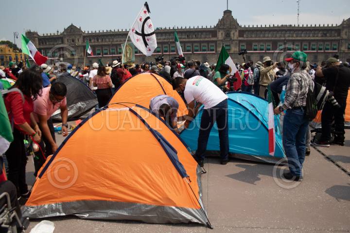 Los integrantes del Frente Nacional Anti-AMLO iniciaron a instalar casas de campaña en el Zócalo, esto a unos días de que instalaron un plantón en avenida Juárez y Reforma. FOTO: MOISÉS PABLO/CUARTOSCURO.COM
