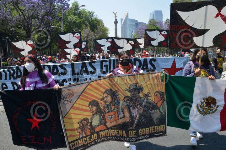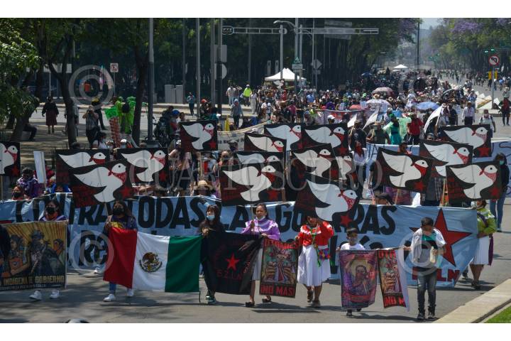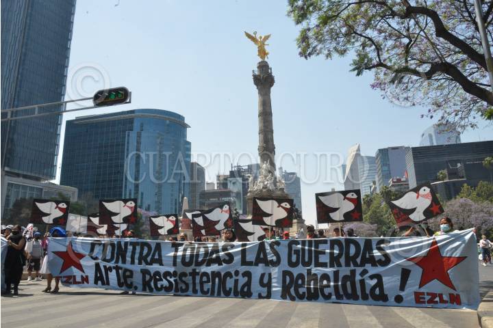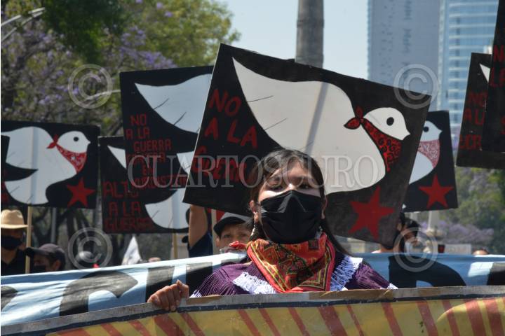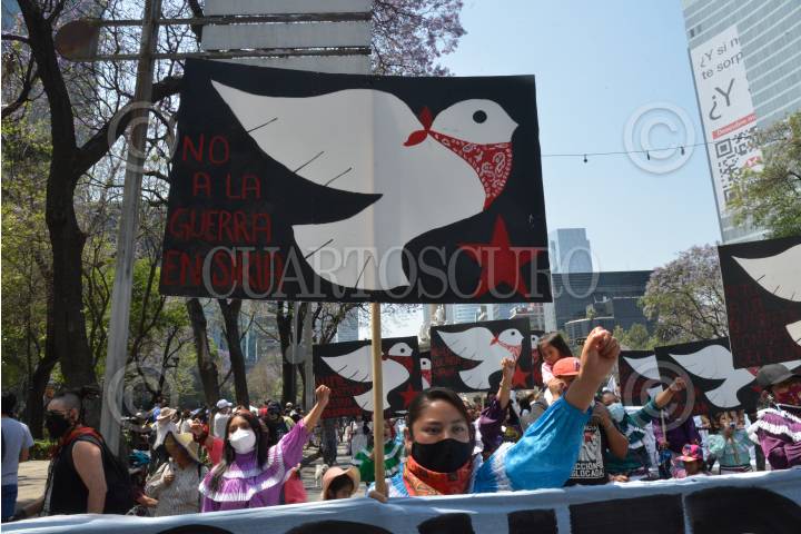 Integrantes del Consejo Indígena de Gobierno (CIG) marcharon en repudio de las "guerras capitalistas" y la 4T.