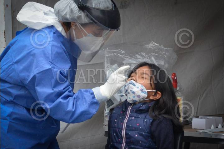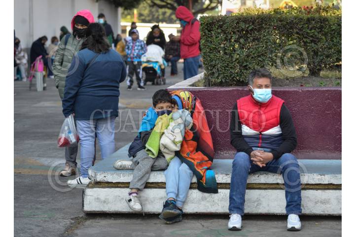Menores de edad esperan junto a sus familiares en las filas para poder realizarse una prueba covid-19 en el macro kiosko ubicado en la alcaldía Venustiano Carranza.