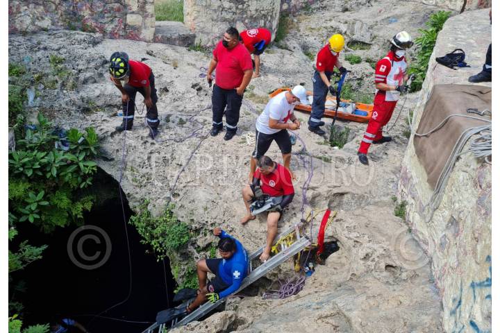 Personal de rescate acuático realizaron trabajos de búsqueda para localizar el cuerpo de un hombre en el cenote, ubicado en la Supermanzana 225, luego de que familiares reportarán su ausencia y señalarán que sabían que se había metido a nadar por la mañana.