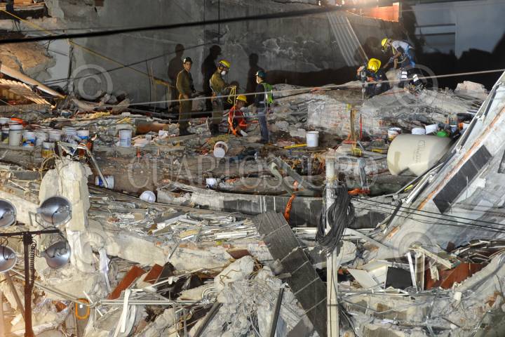 CIUDAD DE MÉXICO., 20SEPTIEMBRE2017.- Continuaron las labores de rescate durante la madrugada de personas atrapadas en los edificios que colapsaron en la ciudad, durante el sismo que se registró la tarde de este 19 de septiembre. FOTO>: LUIS CARBAYO /CUARTOSCURO.COM