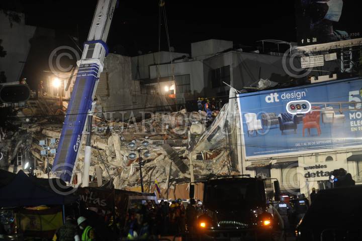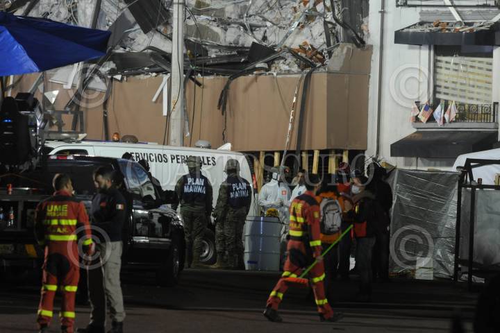 CIUDAD DE MÉXICO., 29SEPTIEMBRE2017.- Esta madrugada fueron rescatados 3 cuerpos sin vida, de este edificio colapsado en Álvaro Obregón 286 en la colonia Roma Norte, por parte de rescatistas españoles que siguen laborando en este lugar. FOTO: LUIS CARBAYO /CUARTOSCURO.COM