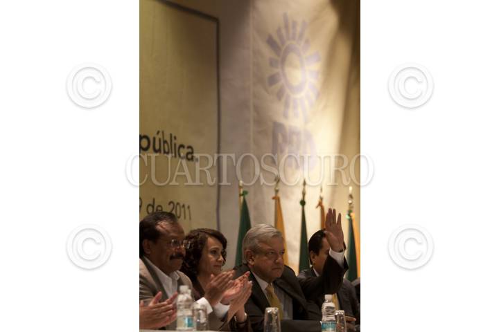 MÉXICO, D.F., 09DICIEMBRE2011.- Andrés Manuel López Obrador, se registró como precandidato oficial ante la cúpula perredista encabezada por su dirigente nacional Jesús Zambrano. La ceremonia se realizó en un hotel de la ciudad ante simpatizantes del tabasqueño. FOTO: MOISÉS PABLO/CUARTOSCURO.COM