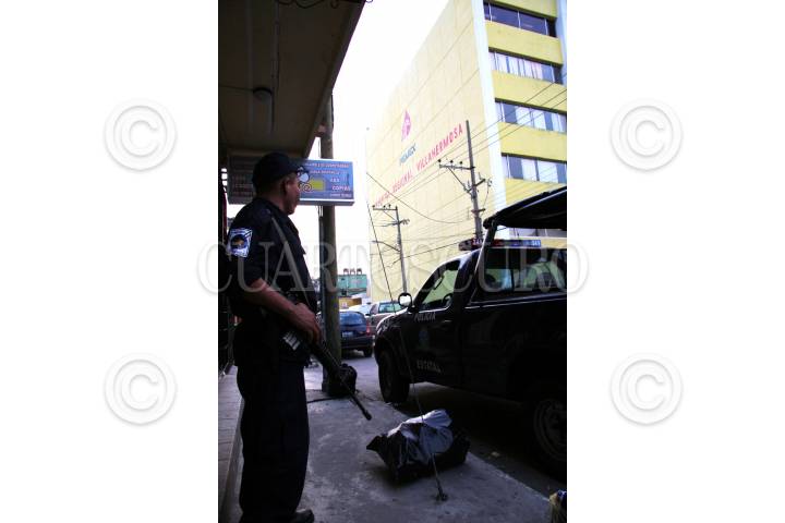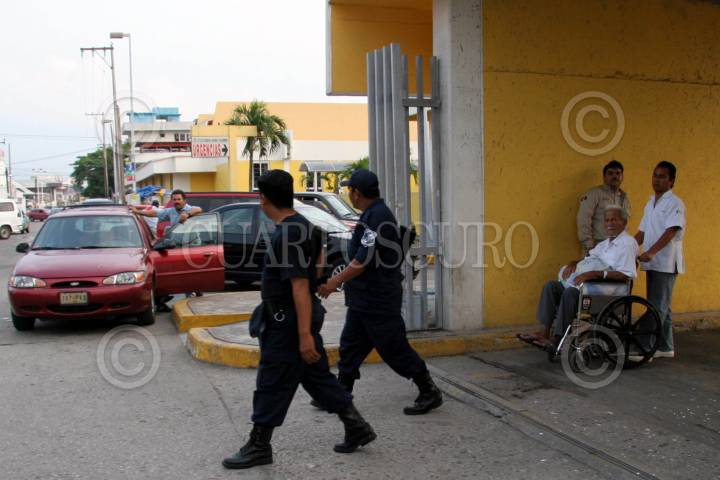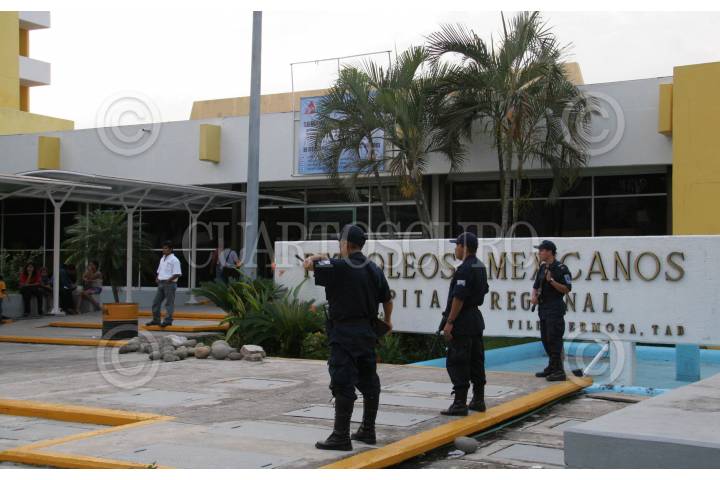 VILLAHERMOSA, TABASCO 07 DE NOVIEMBRE 2006.- Elementos de la SSP resguardan el hospital de PEMEX, debido a que ahí se encuentra Rogelio Paz Nery, uno de los presuntos ejecutores de la matanza de policias. FOTO: MARCO POLO GÚZMAN/CUARTOSCURO.COM