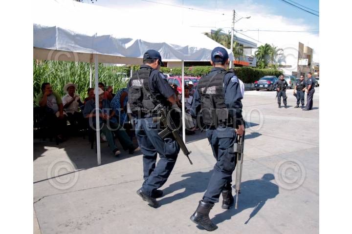 CHILPANCINGO,GUERRERO.-04NOVIEMBRE2005.- Elementos de la policìa municipal y estatal, resguardan las instalaciones del mercado central, donde fueron desalojados en dìas pasados, comerciantes del municipio de Leonardo Bravo (Chichihualco), donde existe un clima de tensiòn, debido a las constantes amenazas que reciben comerciantes de parte del alcalde Leopoldo Cabrera. Foto: Oscar Alvarado /CUARTOSCURO.COM