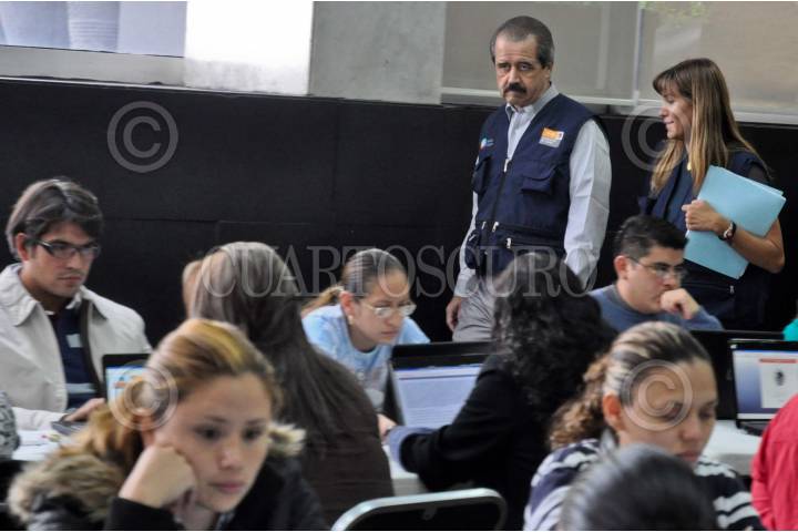 MÉXICO, D.F., 06SEPTIEMBRE2009.- José Ángel Córdova Villalobos, secretario de Salud, recirrió la sede de Tlatelolco, donde se realiza el XXXIII Examen Nacional de Aspirantes a Residencias Médicas, el cual se realiza por computadora por segundo año. FOTO: EDUARDO MORALES/CUARTOSCURO.COM