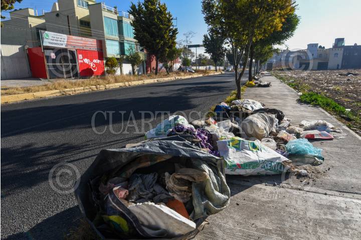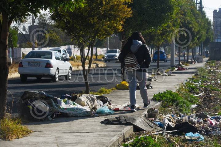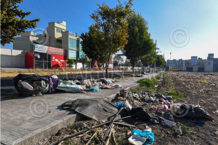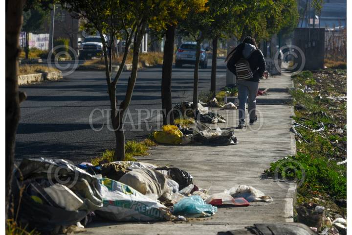 TOLUCA, ESTADO DE MÉXICO, 09ENERO2025.- En la avenida General Abelardo Rodríguez, Delegación Capultitlán en Toluca existen varios terrenos en donde algunos ciudadanos han optado por dejar sus residuos, ropa, basura, tapicería, cables, que llegan a invadir también las banquetas, por donde caminan los transeúntes que tiene que pasar entre la basura. FOTO: CRISANTA ESPINOSA AGUILAR /CUARTOSCURO.COM