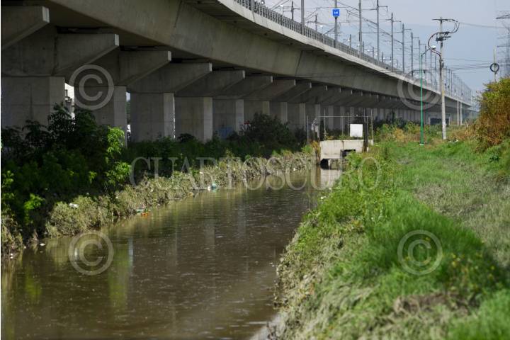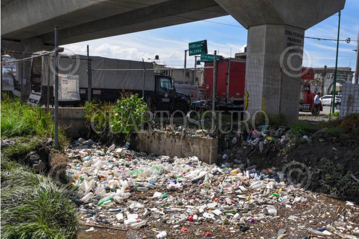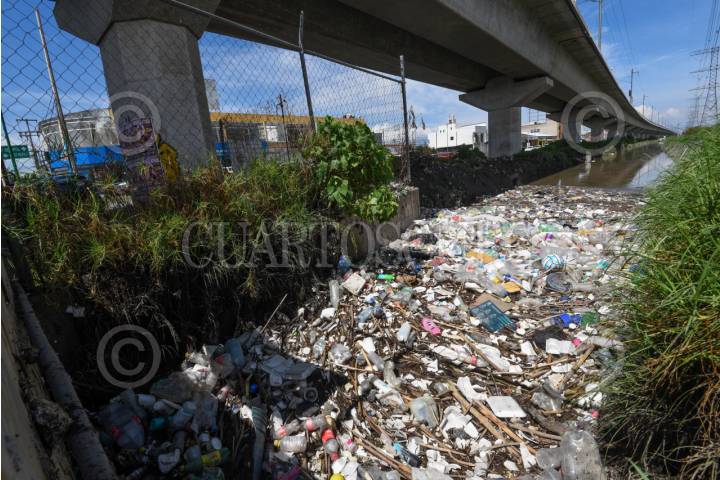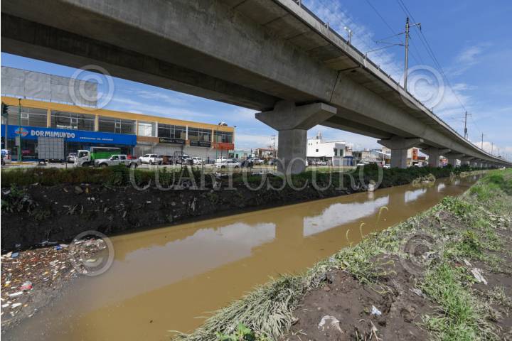 SAN MATEO ATENCO, ESTADO DE MÉXICO, 02JUNIO2025.- El nivel del canal que pasa a un costado de la avenida Solidaridad las Torres y del Tren Interurbano El Insurgente, en un San Mateo Atenco, ya es alto y también presenta bastante basura que impide que el agua pueda correr en el cause. En esta zona se registra una inundación que afecta al menos 4 barrios de este municipio. FOTO: CRISANTA ESPINOSA AGUILAR /CUARTOSCURO.COM