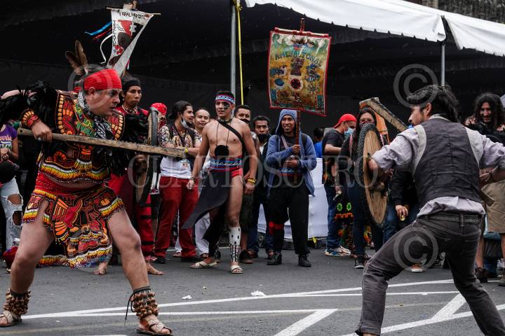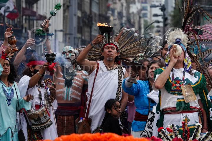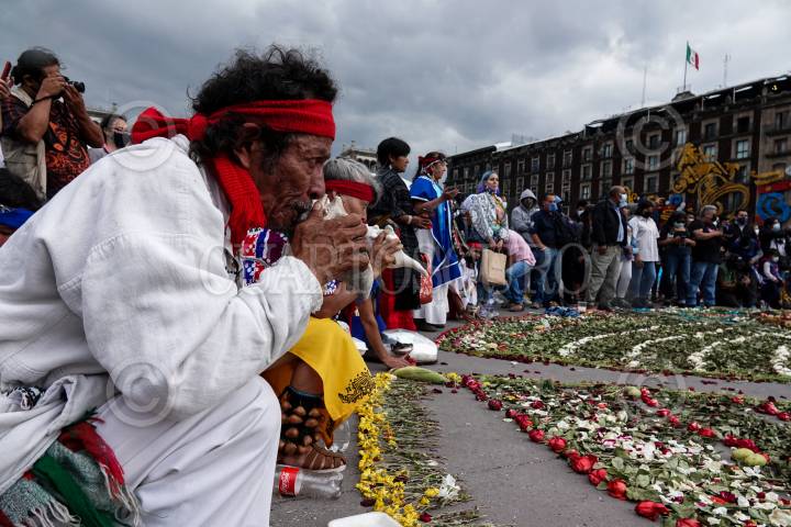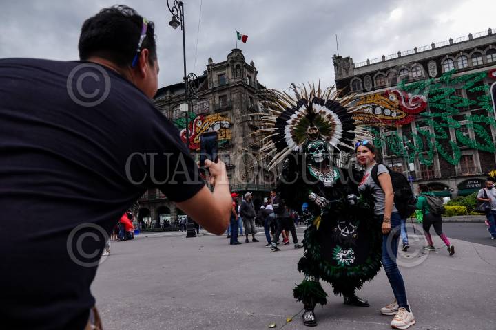 Grupos de danza prehispánica se reunieron en la plancha del Zócalo para conmemorar los "500 años de Resistencia Indígena".