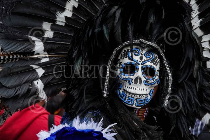 Comparsas de chinelos y huehuenches participaron en su primer gran desfile que partió de la Plaza Tlaxcoaque rumbo al zócalo capitalino como parte de la celebración de los 500 años de Resistencia Indígena.