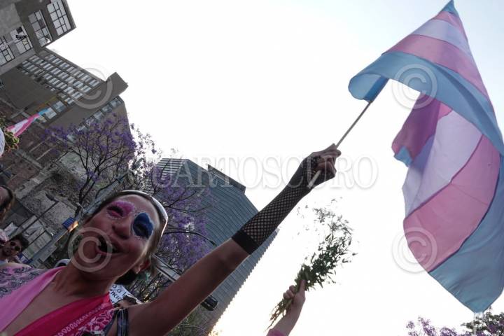 CIUDAD DE MÉXICO, 21JULIO2024. - El pasado miércoles se aprobó en el congreso capitalino la Ley Paola Buenrostro, la cual tipifica como delito el transfeminicidio, este domino, integrantes de la comunidad LGBTTTI, celebraron dicha aprobación. FOTO: DANIEL AUGUSTO /CUARTOSCURO.COM