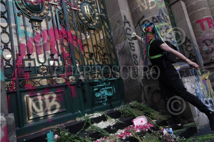 CIUDAD DE MÉXICO, 21JULIO2024.- Una persona trans escucha las palabras de Kenya Cuevas en el Ángel de la Independencia. FOTO: DANIEL AUGUSTO /CUARTOSCURO.COM