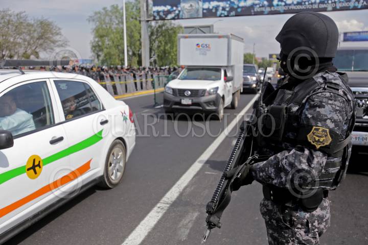GUADALAJARA, JALISCO. 13ENERO2017.- Ejidatarios del poblado de el Zapote exigen el pago por sus tierras y desde temprana hora se manifestaron en el Aeropuerto Internacional Miguel Hidalgo, en espera de una resolución, ya que un grupo de miembros de los ejidos se encontraba en una reunión privada con el Secretario General de Gobierno, Roberto López Lara y a pesar de que un juzgado colegiado dicto sentencia positiva a favor de los ejidatarios, la respuesta del Gobierno del estado no fue la esperada por los pobladores del Zapote por lo que se esperan mas protestas, hasta el lugar llegaron decenas de antimotines y policías federales para evitar que los manifestantes tomaran las instalaciones del Aeropuerto. FOTO : FERNANDO CARRANZA GARCIA / CUARTOSCURO.COM