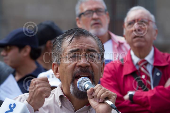 MÉXICO, D.F., 17JUNIO2015.- Enrique García, vocero de los ahorradores defraudados por Ficrea señalo que pidieron el respaldos de la Comisión Nacional de Derechos Humanos por irregularidades de organismo financieros en su calvarios para pode recuperar su dinero, durante la conferencia de prensa que dieron frente a Palacio Nacional. Los defraudados piden el 100 por ciento de sus ahorros defraudados por FICREA, señalaron que acudieron a esta instancia ante las irregularidades y abusos que han cometido en su contra las autoridades financieras del país. Recordaron que son 6, 848 familias ahorradoras las que se encuentran en situación de despojo, quienes señalan como una de las culpables de la situación en la que viven a la Secretaría de Hacienda, quienes debieron haber vigilado sus autoridades financieras. FOTO: MOISÉS PABLO /CUARTOSCURO.COM