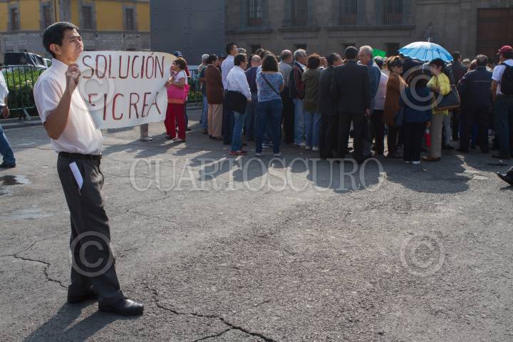 MÉXICO, D.F., 17JUNIO2015.- Ahorradores pidieron respaldos de la Comisión Nacional de Derechos Humanos por irregularidades de organismo financieros durante la conferencia que ofrecieron algunos afectados frente a Palacio Nacional. Los defraudados piden el 100 por ciento de sus ahorros defraudados por FICREA, señalaron que acudieron a esta instancia ante las irregularidades y abusos que han cometido en su contra las autoridades financieras del país. Recordaron que son 6, 848 familias ahorradoras las que se encuentran en situación de despojo, quienes señalan como una de las culpables de la situación en la que viven a la Secretaría de Hacienda, quienes debieron haber vigilado sus autoridades financieras. FOTO: MOISÉS PABLO /CUARTOSCURO.COM