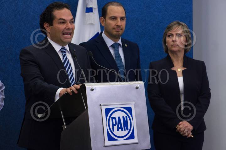 CIUDAD DE MÉXICO, 25FEBRERO2019.- Marko Cortés Mendoza Presidente Nacional del PAN ,en la rueda de prensa realizada en la sede nacional del partido, que se convocó para tratar el tema de la huelga sindical ante la negativa de la alcaldesa por la exigencia del aumento salarial del 17% en el estado de Pachuca. El dirigente del partido aseguro que respalda la postura de la alcaldesa y recalcó que el partido acompañará a Yolanda durante todo el proceso. FOTO: ROGELIO MORALES /CUARTOSCURO.COM