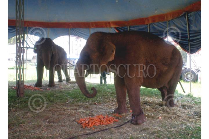 MÉXICO D.F., 24JULIO2009.- Las elefantas Ana y Tania de 12 y 18 años respectivamente provocaron una intensa movilización policiaca, al soltarse de sus amarras que las sostenian en el predio donde habitan, las elefantas son propiedad del circo Unión ubicado en prolongación División del Norte FOTO:LUIS CARBAYO/CUARTOSCURO.COM
