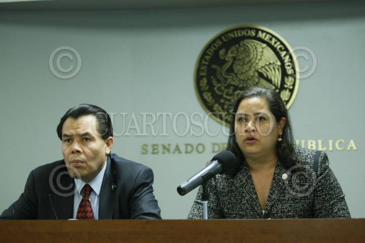 MÉXICO, D.F., 02SEPTIEMBRE2010.- Los senadores Adriana González Carrillo y René Arce Islas, del PAN y PRD respectivamente dieron conferencia de prensa en el Senado de la República. FOTO: CUARTOSCURO.COM