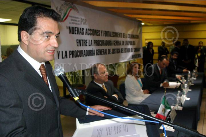 CD. JUAREZ, CHIHUAHUA 30MAYO2005.- Mirelle Roccatti nueva fiscal especial para la atención a crímenes en contra de mujeres en Cd, Juarez, luego de que rindiera protesta ante Daniel Cabeza de Vaca, procurador General de la República, como nueva titular de esta Comisión Federal. Así también se llevó a cabo el anuncio de 60 millones de pesos que serán entregados a los familiares de las victimas de los feminicidios que ocurren en esta frontera. FOTO: JGuadalupe Perez/CUARTOSCURO.COM