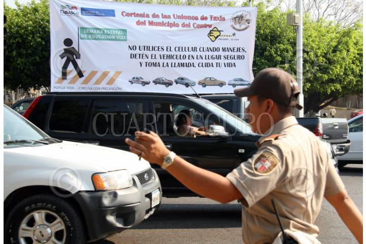 VILLAHERMOSA, TABASCO, 31MARZO2009.- Dio inició a la Semana Estatal de Educación Vial denominada “Por la Vida…. ¡Circula con Precaución!”, donde personal de la dirección de la Policía Estatal de Caminos (PEC), conjuntamente con Protección Civil invitan a los conductores, peatones y chóferes a respetar los señalamientos viales, como de igual manera prevenir para este próximo periodo vacacional. FOTO: MARCO POLO GUZMÁN HERNÁNDEZ/CUARTOSCURO.COM