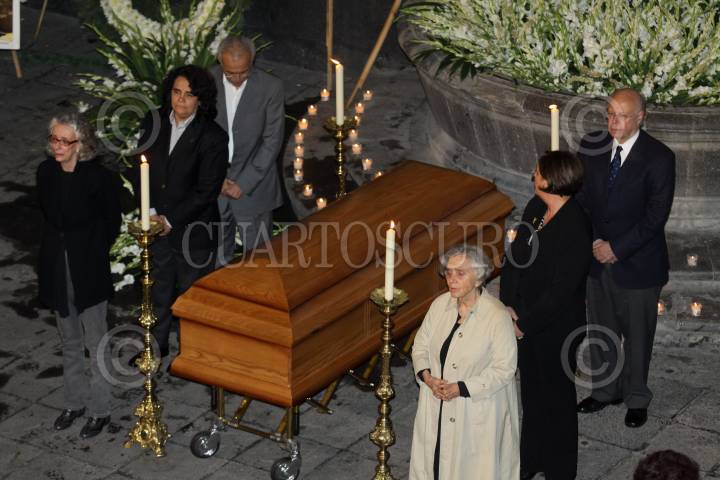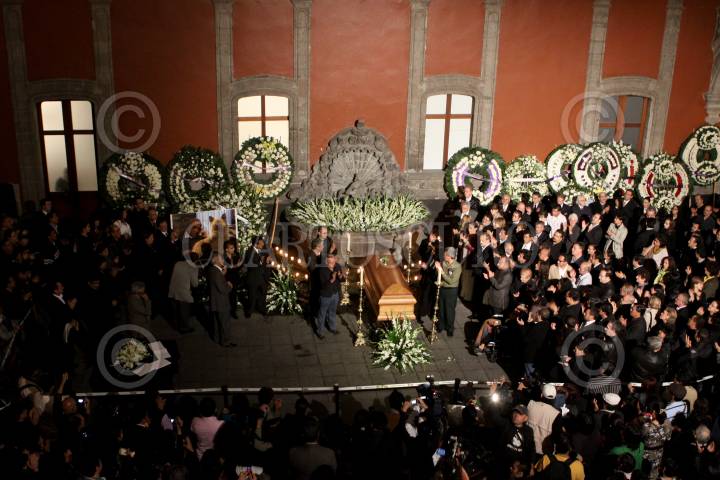 MÉXICO, D.F., 19JUNIO2010.- La escritora Elena Poniatowska, la feminista Marta Lamas, la presidenta del Conaculta, Consuelo Sáizar; la titular de la secretaria de Cultura Elena Cepeda de León y el rector de la UNAM, José Narro montaron una guardia de honor ante el feretro donde descanza el cuerpo del escritor mexicano Carlos Monsiváis en un homenaje de cuerpo presente que se realiza en el Museo de la Ciudad de México; Carlos Monsiváis falleció esta tarde a la edad de 72 años a las 13:48 horas de esta tarde en el área de terapia intensiva del Instituto Nacional de Ciencias Médicas y Nutrición, por insuficiencia respiratoria como consecuencia de fibrosis pulmonar. FOTO: RODOLFO ANGULO/CUARTOSCURO.COM