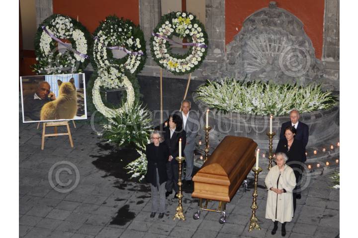 MÉXICO, D.F., 19JUNIO2010.- Amigos y familiares del escritor mexicano Carlos Monsiváis realizan un homenaje de cuerpo presente en el Museo de la Ciudad de México; Carlos Monsiváis falleció esta tarde a la edad de 72 años a las 13:48 horas en el área de terapia intensiva del Instituto Nacional de Ciencias Médicas y Nutrición, por insuficiencia respiratoria como consecuencia de fibrosis pulmonar. FOTO: RODOLFO ANGULO/CUARTOSCURO.COM
