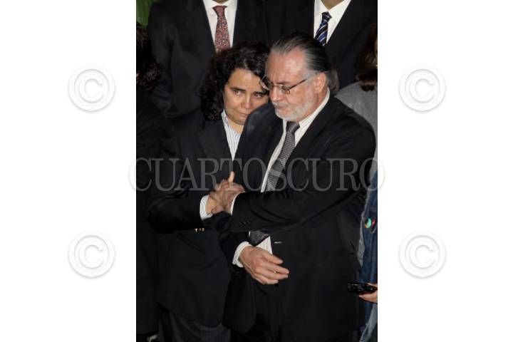 MÉXICO, D.F., 19JUNIO2010.- Consuelo Sáizar, presidenta del Conaculta y el escritor Sealtiel Alatriste durante el homenaje de cuerpo presente del escritor mexicano Carlos Monsiváis que se realiza en el Museo de la Ciudad de México; Carlos Monsiváis falleció esta tarde a la edad de 72 años a las 13:48 horas de esta tarde en el área de terapia intensiva del Instituto Nacional de Ciencias Médicas y Nutrición, por insuficiencia respiratoria como consecuencia de fibrosis pulmonar. FOTO: RODOLFO ANGULO/CUARTOSCURO.COM