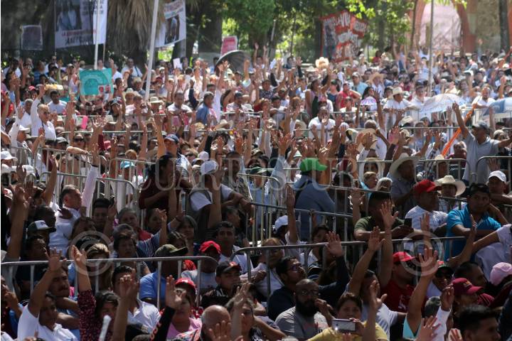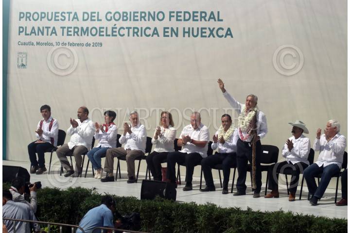 CUAUTLA, MORELOS, 10FEBRERO2019.- Andrés Manuel López Obrador, presidente de la República visitó esta ciudad para presentar la “Propuesta del gobierno federal Planta Termoeléctrica en Huexca”, que consiste en una consulta pública en los estados de Morelos, Tlaxcala y Puebla los días 23 y 24 de febrero para determinar el futuro de esta planta que ha generado rechazo de una parte de la población, a la que el mandatario llamó “radicales de izquierda, conservadores”. El presidente también se comprometió a signar la solicitud de un estudio con un organismo internacional en el que se garantice el suministro y calidad del agua. FOTO: MARGARITO PÉREZ RETANA /CUARTOSCURO.COM