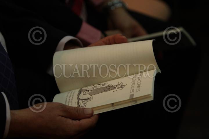 MÉXICO, D.F., 18JUNIO2015.- José Alfredo Femat, presenta la primera edición de su libro "100 preguntas y respuestas sobre la nueva reforma electoral", que conjuga el esfuerzo de especialistas en el tema electoral para aclarar de forma clara, sencilla y precisa la nueva reforma electoral anunciada en mayo del 2014 en la gaceta oficial. FOTO: ISABEL MATEOS /CUARTOSCURO.COM