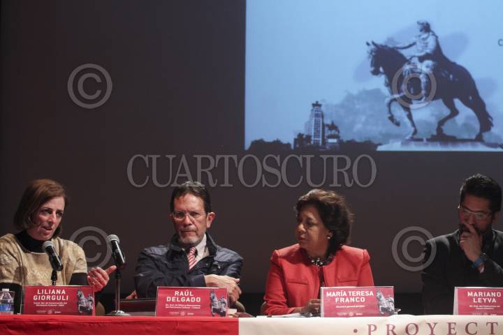 CIUDAD DE MÉXICO, 28JUNIO2016.- María Teresa Franco, director del Instituto Nacional de Antropología e Historia (INAH), anunció la restauración de la estatua de "El Caballito" de Manuel Tolsá, localizada en la explanada del Museo Nacional de Arte (Munal), y frente al Palacio de Minería. La etapa de restauración durará aproximadamente tres meses. FOTO: MARÍA JOSÉ MARTÍNEZ /CUARTOSCURO.COM