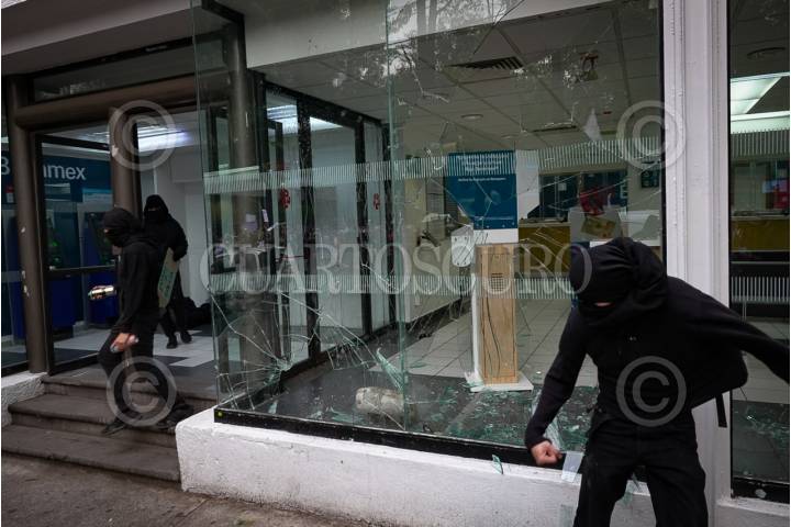 CIUDAD DE MÉXICO 04JULIO2025.- Integrantes de colectivos anarquistas y feministas realizaron actos vandálicos mientras se llevaba a cabo la primera protesta en contra de la gentrificación. FOTO: ROGELIO MORALES /CUARTOSCURO.COM