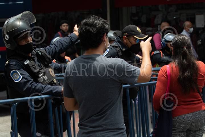Molestia entre los peatones ha causado el operativo de la policía para restringir la movilidad en las calles aledañas que convergen hacia el Zócalo, ya que varias calles están cercadas por vallas y policías que impiden el libre paso.