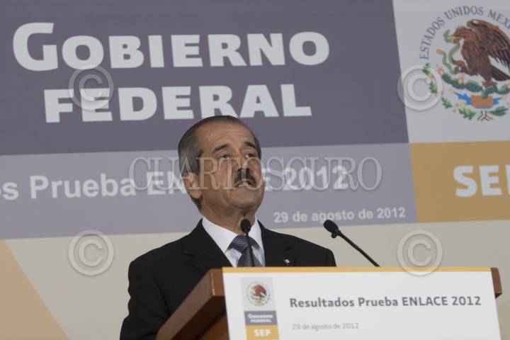 MÉXICO, D.F., 29AGOSTO2012.- José Ángel Córdova Villalobos, secretario de Educación Pública, presentó la entrega de los resultados de la "Prueba Enlace 2012" en la sede de la SEP. FOTO: MOISÉS PABLO /CUARTOSCURO.COM
