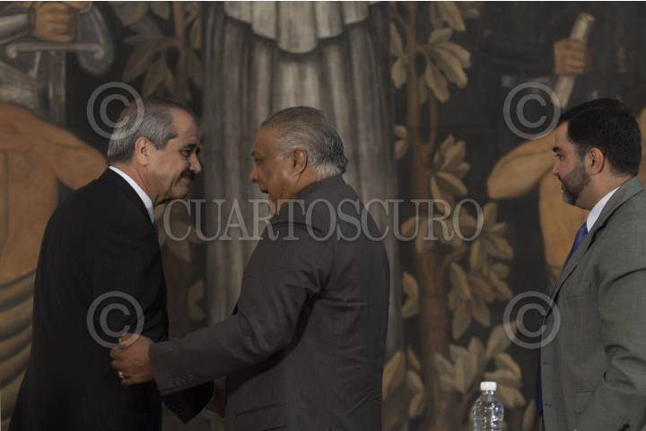 MÉXICO, D.F., 29AGOSTO2012.- Luis Ignacio Sánchez, administrador federal de servicios educativos para el Distrito Federal, José Ángel Córdova Villalobos, secretario de Educación Pública, y Francisco Ciscomani Freaner, subsecretario de Educación Pública, encabezaron la entrega de los resultados de la "Prueba Enlace 2012" en la sede de la SEO. FOTO: MOISÉS PABLO /CUARTOSCURO.COM